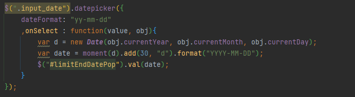 moment 라이브러리를 사용하면 간편하게 포맷팅까지 지정할 수 있다